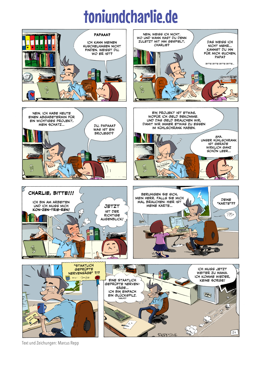Ab Folge 16 kamen Toni und Charlie als Einseiter daher, davor hatte ich die Serie als Halbseiter angelegt. Für den Einseiter orientierte ich mich an der Zielgröße A4, damit die Zeitung von mir immer eine gleich große Folge geliefert bekam.